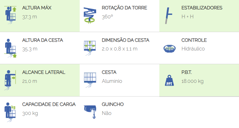 Os comandos hidráulicos, localizados tanto na base quanto no cesto, oferecem controle total sobre a plataforma. Além disso, um horímetro elétrico na cabine do veículo permite o monitoramento preciso do tempo de operação.
